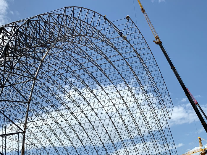 (2)网架加工前应对现场尺寸进行复测,确认无误后方可进行加工、安装;网架制作、运输、安装应遵守《空间网格结构技术规程》JGJ7-2010、《钢网架东兴螺栓球节点》JG/T 10-2009、《钢网架东兴螺栓球节点用高强度螺栓》 GB/T 16939-2016、《东兴钢结构东兴工程东兴施工规范》 GB50755-2012、《东兴钢结构东兴工程东兴施工质量验收标准》 GB50205-2020。